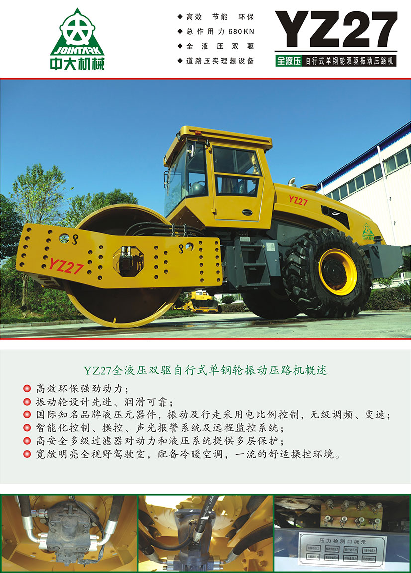 YZ27全液壓雙驅自行式單鋼輪振動壓路機
